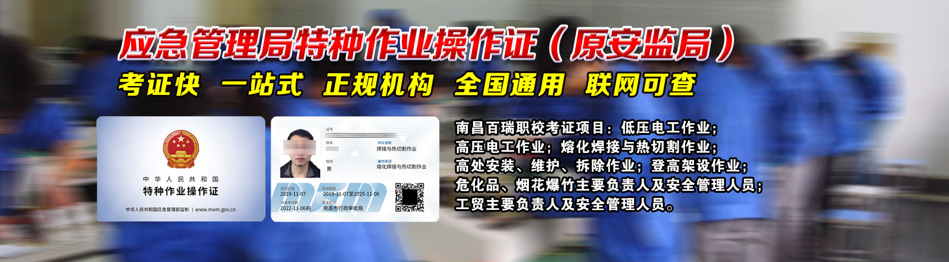 南昌百瑞職業(yè)培訓(xùn)技術(shù)學(xué)校創(chuàng)立于2003年。是經(jīng)政府部門批準(zhǔn),江西省內(nèi)規(guī)模較大,教學(xué)設(shè)施先進(jìn),專業(yè)培訓(xùn):挖掘機(jī)駕駛員、裝載機(jī)駕駛員、叉車駕駛員、起重機(jī)駕駛員和指揮、電工、電焊工、工程機(jī)械維修工、電商網(wǎng)絡(luò)運(yùn)營、健身教練、無人機(jī)及視頻剪輯培訓(xùn)、特種設(shè)備安全管理、壓力容器、氣瓶充裝、危化品生產(chǎn)(經(jīng)營)單位主要負(fù)責(zé)人和安全員、煙花爆竹、登高作業(yè)等專業(yè)及培訓(xùn)的一所職業(yè)技術(shù)培訓(xùn)學(xué)校。 學(xué)校師資力量雄厚,具有中高級(jí)專業(yè)技術(shù)職稱數(shù)十名。教學(xué)采用理論知識(shí)教學(xué)、模擬實(shí)操訓(xùn)練、實(shí)訓(xùn)操作訓(xùn)練的模式,實(shí)行“一對(duì)一”的教學(xué)方法,培訓(xùn)了大批動(dòng)手能力強(qiáng)的技術(shù)人才,在省內(nèi)享有盛譽(yù)。 學(xué)校多年來被評(píng)為優(yōu)質(zhì)學(xué)校、又被授予技能人才培訓(xùn)基地、特種作業(yè)人員考試基地、南昌市安全生產(chǎn)教育培訓(xùn)基地、校企合作人才培訓(xùn)示范基地、創(chuàng)業(yè)培訓(xùn)定點(diǎn)機(jī)構(gòu)以及技能提升培訓(xùn)定點(diǎn)機(jī)構(gòu);同時(shí)是國家工程機(jī)械行業(yè)職業(yè)技能鑒定站;是江西省質(zhì)監(jiān)局叉車、起重機(jī)駕駛與指揮承訓(xùn)考證單位;是江西省安監(jiān)局電工、電焊工承訓(xùn)考證單位;是江西省退役士兵職業(yè)教育和技能培訓(xùn)定點(diǎn)承訓(xùn)院校。 學(xué)校教學(xué)器材先進(jìn),擁有挖掘機(jī)、裝載機(jī)、叉車、起重機(jī)、電工、電焊工、電商、健身等教學(xué)設(shè)備,同時(shí)配有模擬教學(xué)儀器,供學(xué)員實(shí)訓(xùn)使用。學(xué)員經(jīng)培訓(xùn)考核合格后,頒發(fā)中華人民共和國《職業(yè)資格證》、《特種作業(yè)操作證》。 歡迎廣大社會(huì)有志青年,復(fù)員軍人來校培訓(xùn),掌握一技之長,服務(wù)于社會(huì),實(shí)現(xiàn)自己的人生夢想。